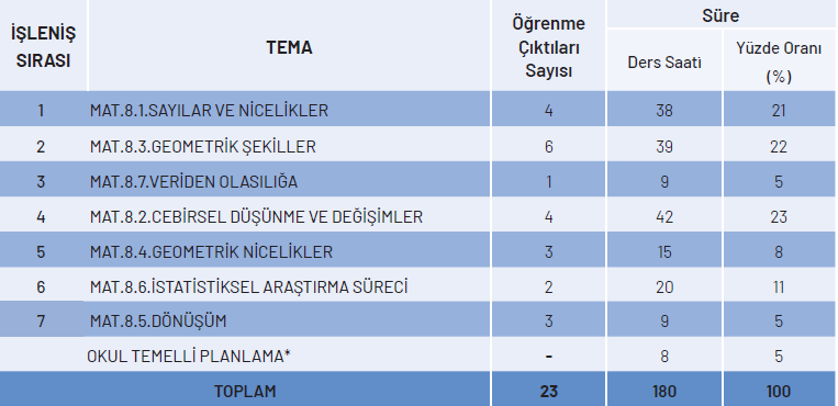 • 8.Sınıf Matematik Müfredatı