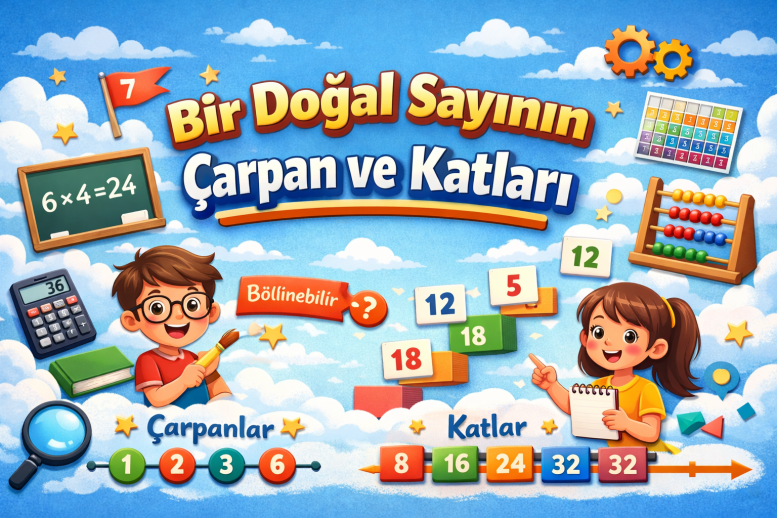 Doğal sayılarla yapılan işlemler, matematiğin temel yapı taşlarından biridir. Bu işlemler arasında önemli bir yere sahip olan çarpanlar ve katlar, sayıların yapısını anlamamıza ve sayılar arasındaki ilişkileri keşfetmemize yardımcı olur. Bir doğal sayının çarpanlarını ve katlarını belirleyebilmek; bölünebilme, asal sayılar, ortak bölenler ve ortak katlar gibi pek çok matematik konusunun da temelini oluşturur.
