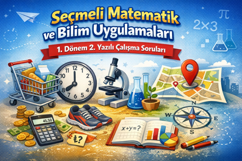 Bu nedenle hazırlanan ve yukarıda yer alan sorular, seçmeli matematik ve bilim uygulamaları dersinin günlük hayatla ilişkisini içeren ve 1. dönem 2. yazılı hazırlık çalışma soruları aşağıdadır.